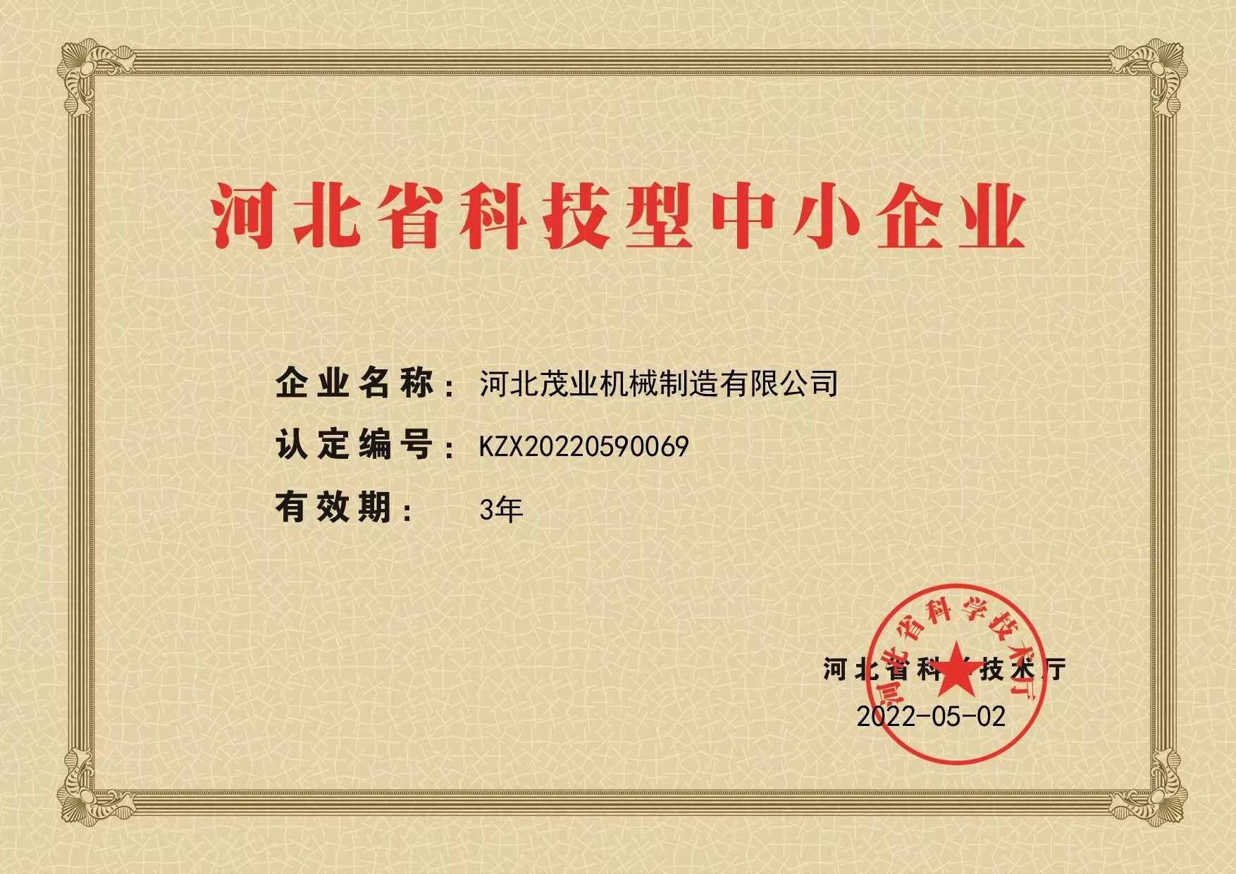 近日,河北茂業(yè)機(jī)械制造有限公司獲得由河北省科學(xué)技術(shù)廳授予的“科技型中小企業(yè)”榮譽(yù)稱號,這是公司在提高企業(yè)自主創(chuàng)新能力、走創(chuàng)新型持續(xù)發(fā)展道路上取得的又一喜人成果,這無疑是我省對高新技術(shù)產(chǎn)品、科技服務(wù)公司的最高榮譽(yù);是對河北茂業(yè)公司知識產(chǎn)權(quán)、專有技術(shù)、高新科技的充分肯定。